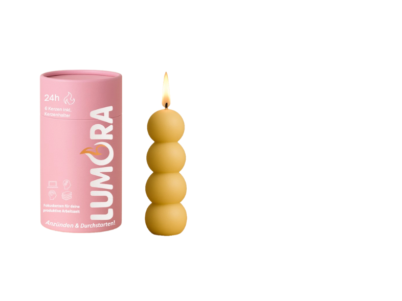 Mit der Fokuskerze von Lumora startest du deine Arbeitssessions bewusst und strukturiert – ganz ohne App, Timer oder Stress. Die natürliche Brenndauer von ca. 4 Stunden steht für einen produktiven Tag. Einfach anzünden und eintauchen.